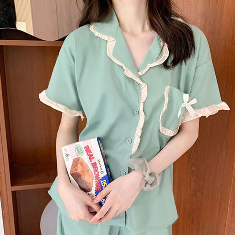夏の小紅書と同じスタイルの女性用パジャマ、日本製模造綿半袖ズボン、学生用エアコン付きルームウェア、ホームウェアセット