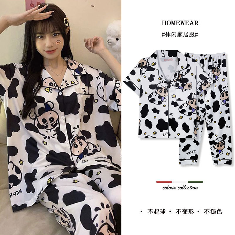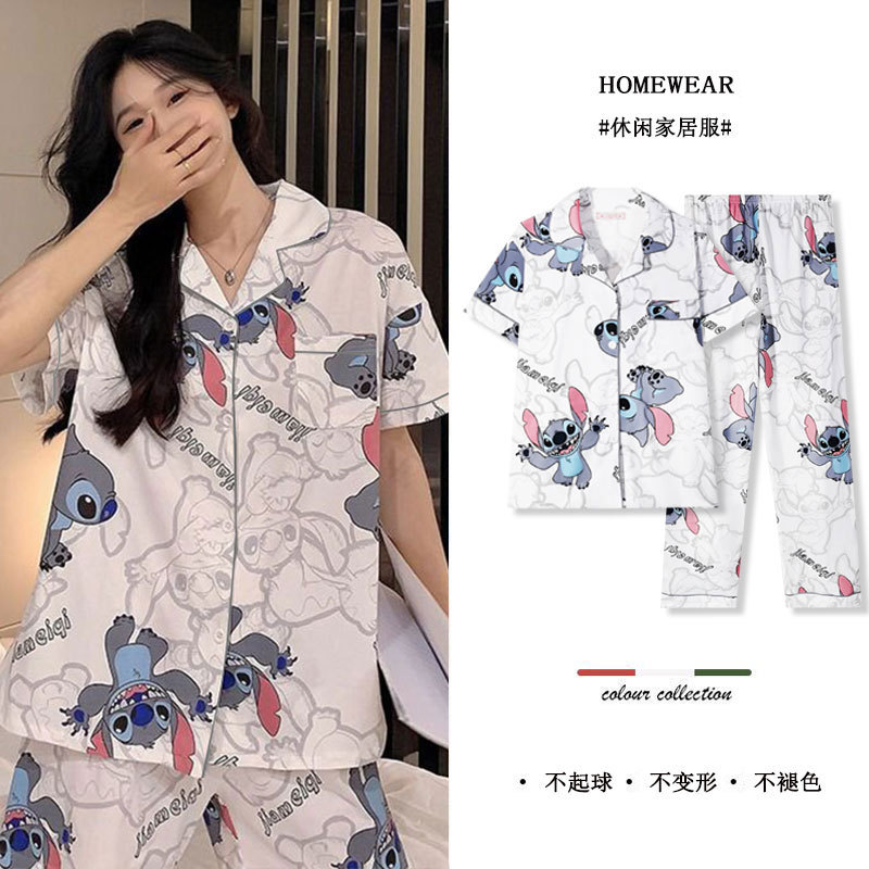 2024新型夏日系アニメパジャマ女性半袖長ズボンカーディガン減齢学生寮ルームウェア