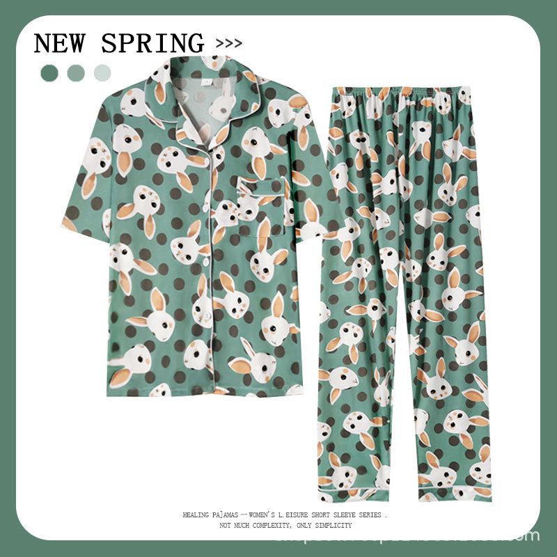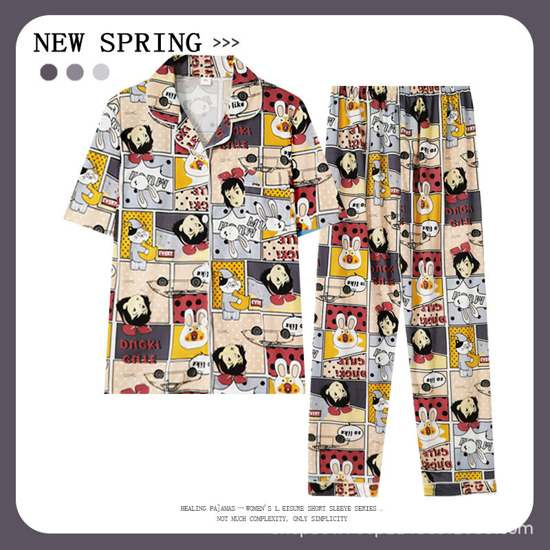 クロスボーダー卸売りの新型パジャマ女性半袖長ズボンのカーディガンは、漫画大根の家庭服セットを着ることができる