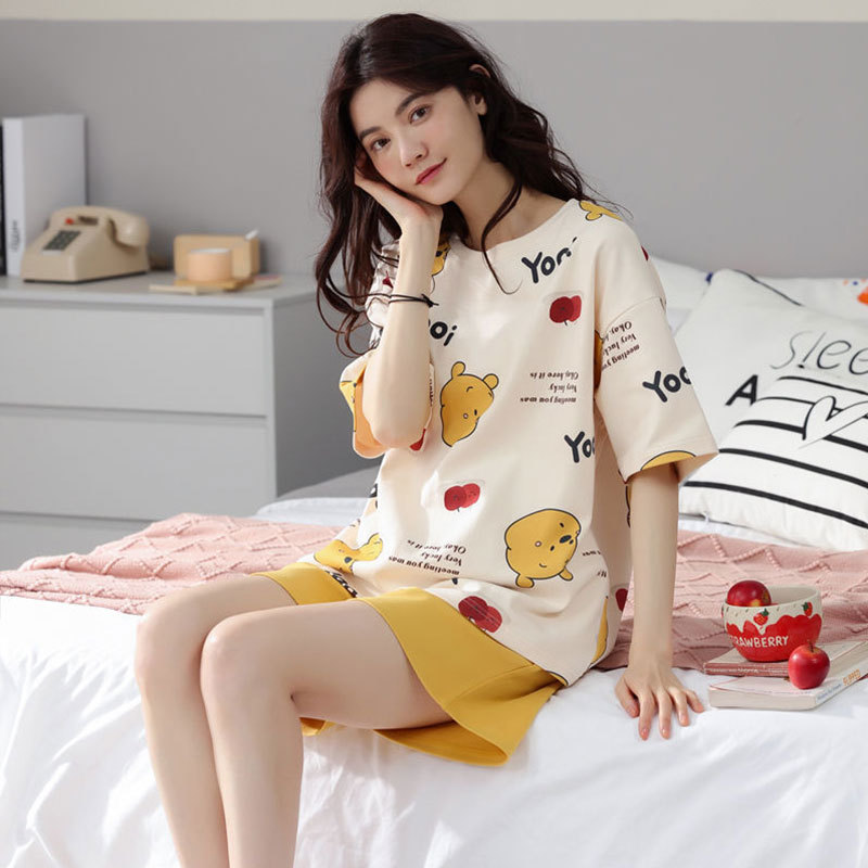 日系夏の新商品パジャマ女性丸首半袖半ズボンアニメかわいい減齢学生ベアー部屋服セット