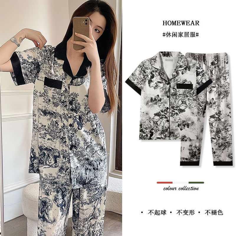軽豪華高級感ファッションパジャマ女性長袖春秋新作カーディガン夏薄手女性ホームウェアセット