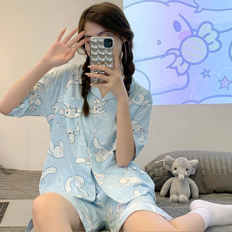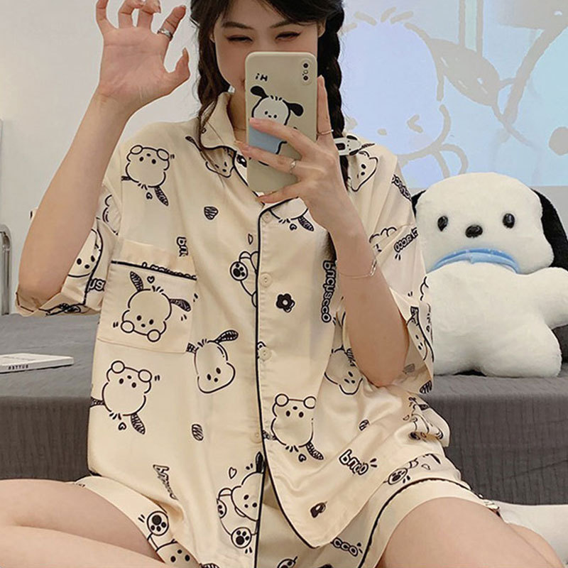 パジャマ女性の夏の半袖半ズボンの日本風アニメのゆるいカーディガンのパチャ犬の家の服のスーツは外で着ることができます。