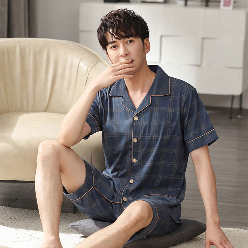 パジャマ男の夏は綿の半袖に似せてカジュアルでゆったりしています。
