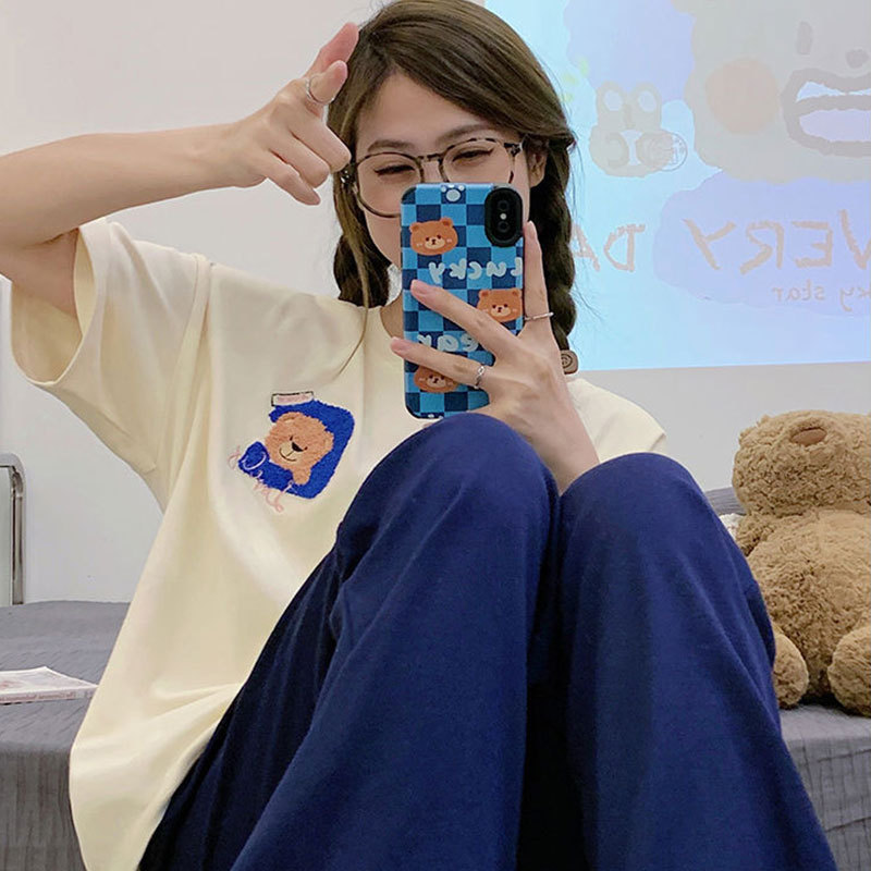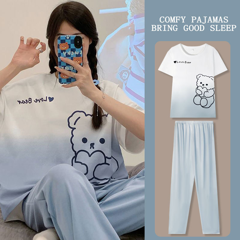 日本系アニメ米白熊パジャマ女性夏の新型綿半袖ズボン少女カジュアル家庭服セット