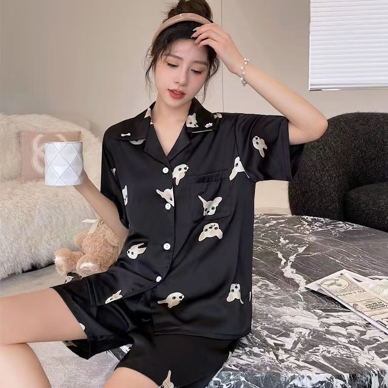日進斗金龔俊同金法斗パジャマ女性半袖半ズボン夏は綿のかわいいアニメの子犬セットに似せている