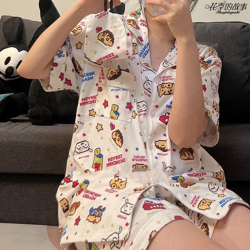 韓国ins風クレヨンしんちゃんパジャマ女性夏半袖薄手綿スーツネット赤漫画学生ホームウェア