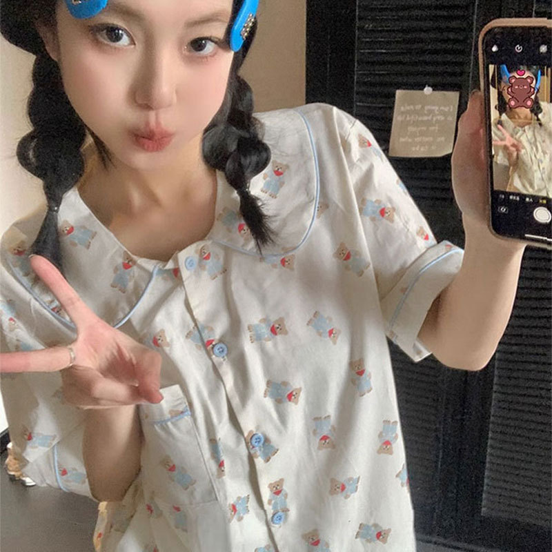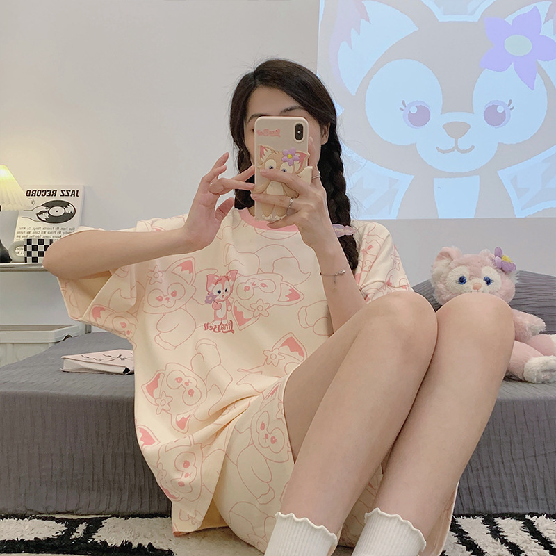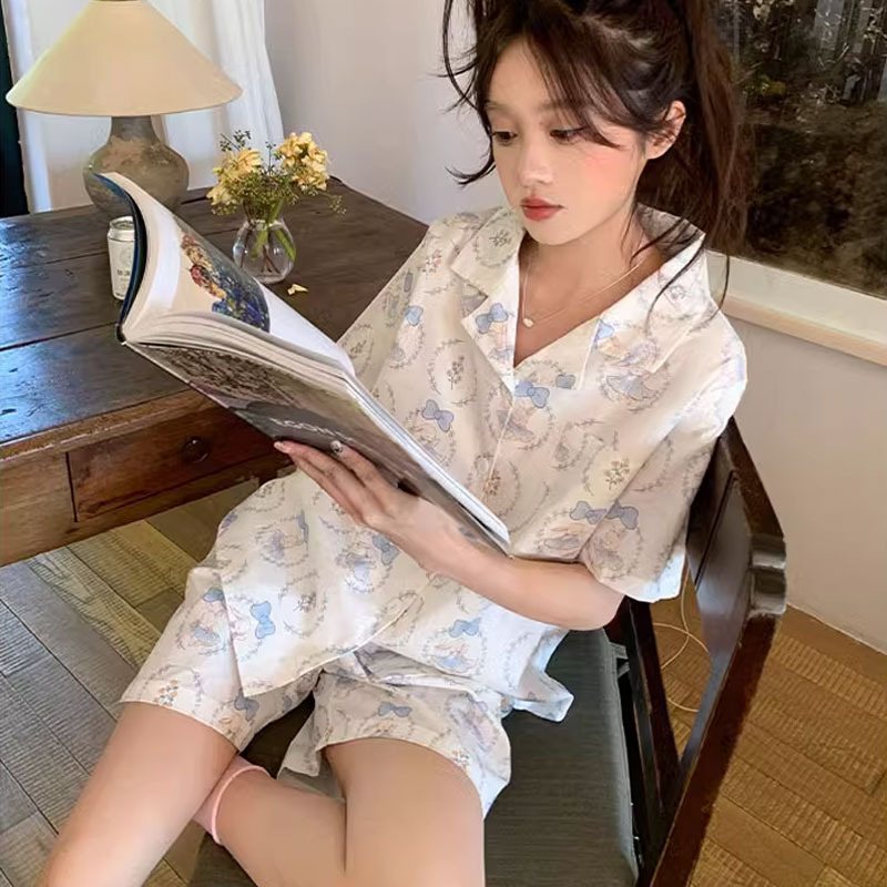 パジャマ女性夏アニメ半袖半ズボンゆるい少女風甘美でかわいい減齢家庭服の外着2点セット