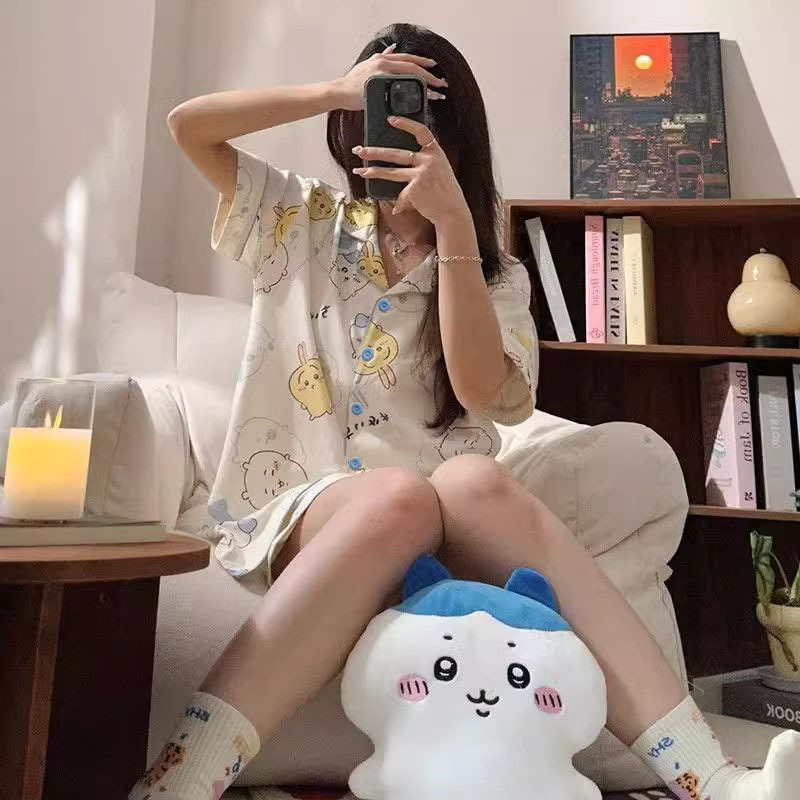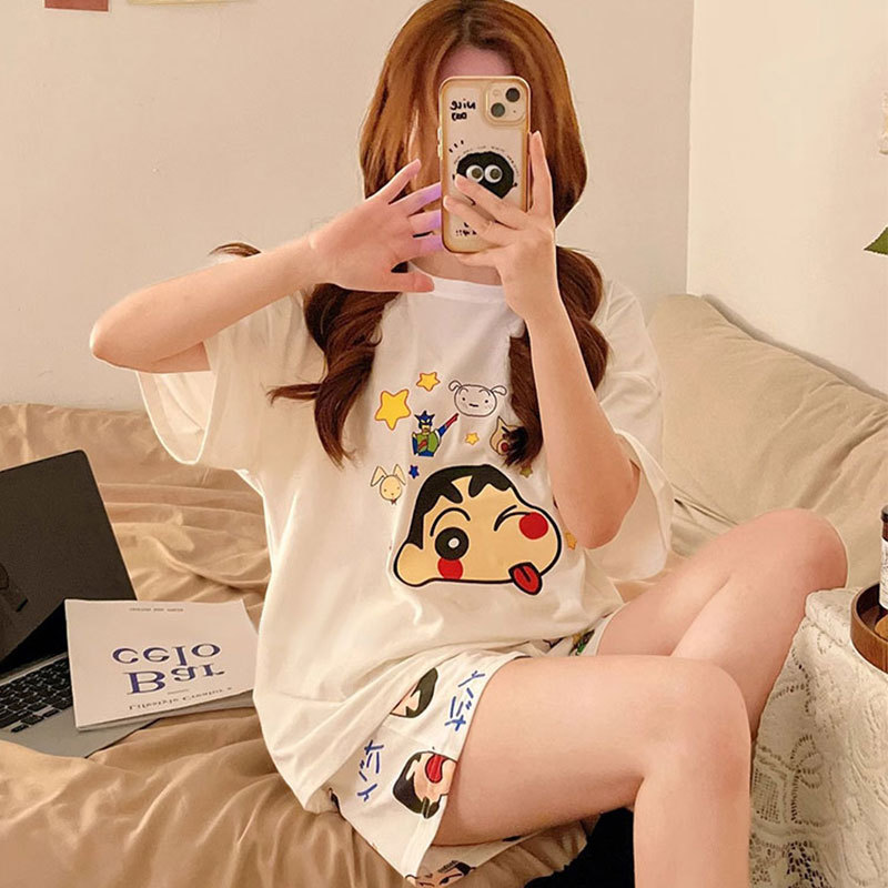 日系パジャマ女子夏ins学生寮かわいいアニメしんちゃん半袖半ズボンゆるい外着ホームウェア