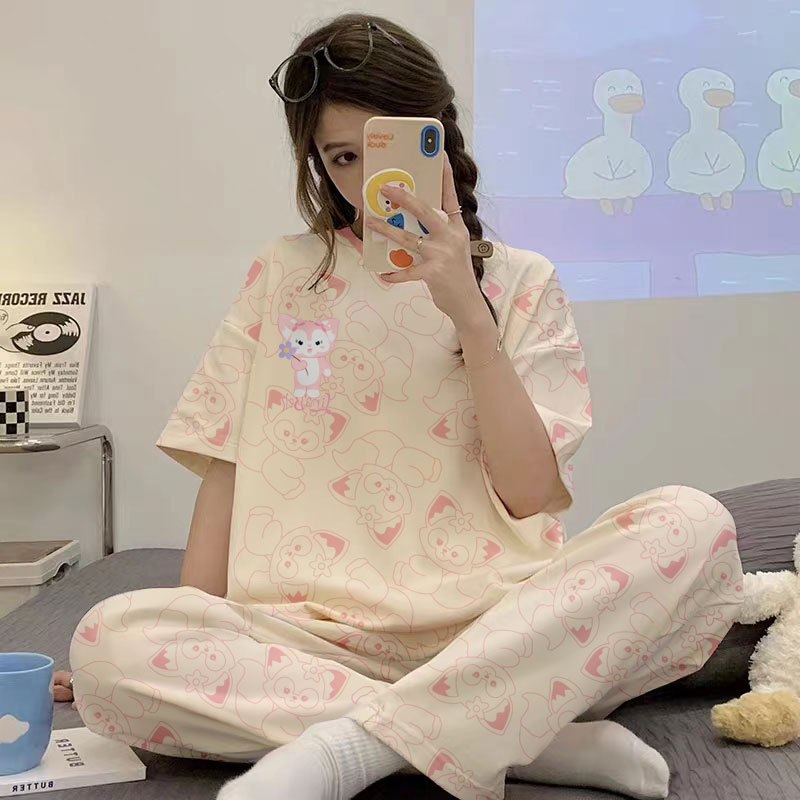 夏の新型かわいいアニメパジャマ女性半袖パンツ学生カジュアル薄い家庭服2点セット