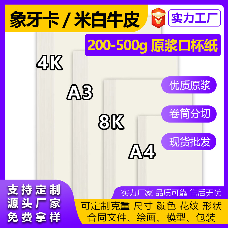 A4象牙色紙米白クラフト紙ミルク白色硬紙浅黄印刷紙白芸術紙