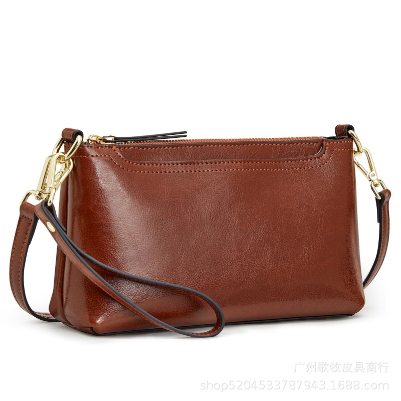 クロスボーダーオイルワックスレザーレディース本革ショートクラッチバッグファッショナブルなレトロな大容量収納クロスボディポータブルリストバッグ