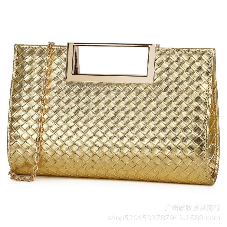 クロスボーダーシェービングレディースPUレザーディナーバッグヨーロッパとアメリカのファッションシングルショルダークロスボディ防水ポータブルゴールドディナーバッグ