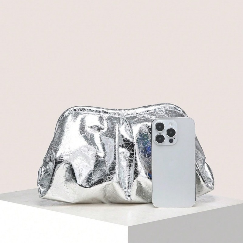 Amazonの人気のシルバークラウドバッグレディースPUイブニングバッグヨーロッパとアメリカのファッション絶妙な質感の収納イブニングバッグ