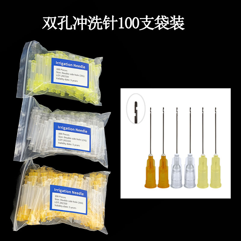 2穴洗浄針100本袋入り使い捨て歯科洗浄針歯科洗浄針2穴25G 27G 30G