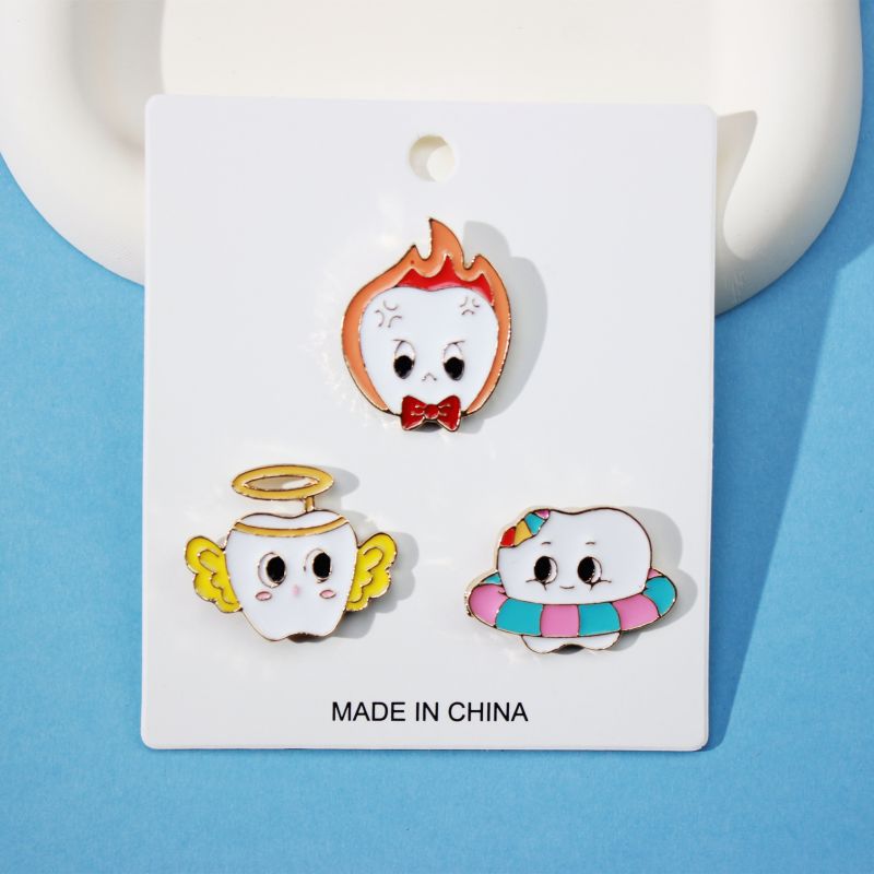 外国貿易用の歯飾り、歯のおもちゃ、ジャンプトゥース、歯科医院のプチギフト、販促品、歯科医師のブローチ