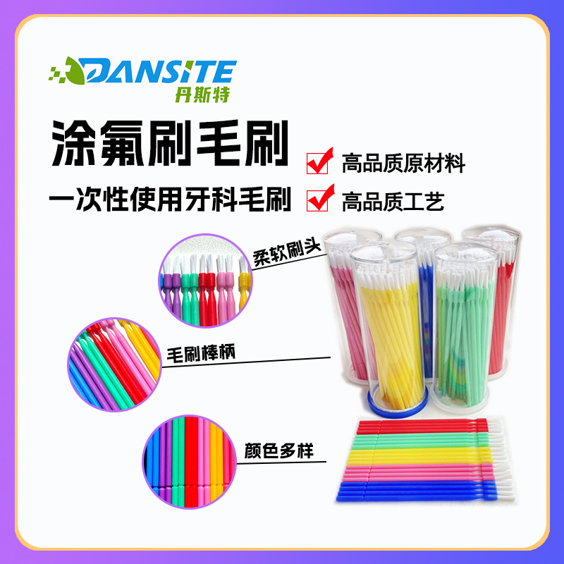 外国貿易のプロダクト歯科材料長いハンドルの毛のブラシの使い捨ての毛のブラシのフッ素のブラシの使い捨てのブラシの100本/本