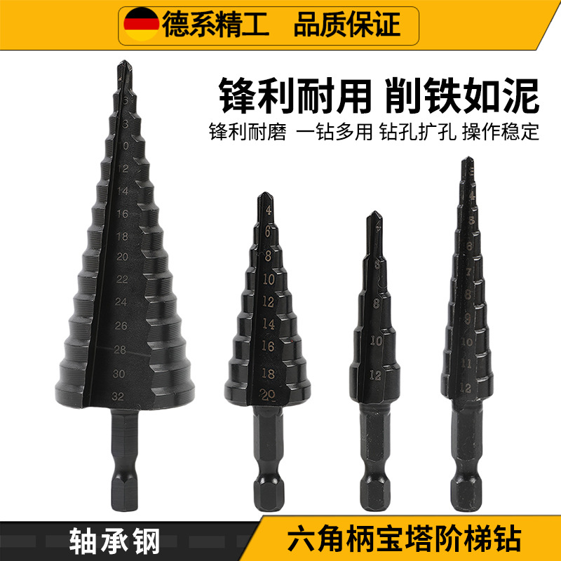 六角ハンドル直溝黒階段ドリル3-12/4-12/4-20/4-32mm拡穴階段ドリル
