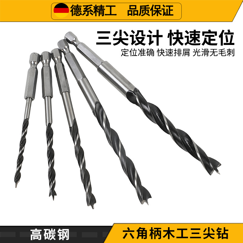 六角ハンドル三尖木工ドリル4mm8mm10mm木工穴拡張ツールセット5本セット