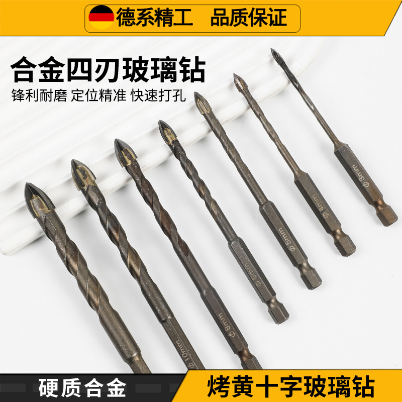 クロスボーダー六角ハンドルクロスガラスドリルタイル穴あけドリルベイクドイエロースパイラルセラミック壁穴あけドリル