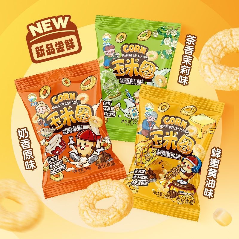 九日トウモロコシの輪のミルクの香りの蜂蜜のバターのお茶の香りのジャスミンの味の膨化のレジャーの間食の午後のお茶の軽食は揚げ物ではありません。