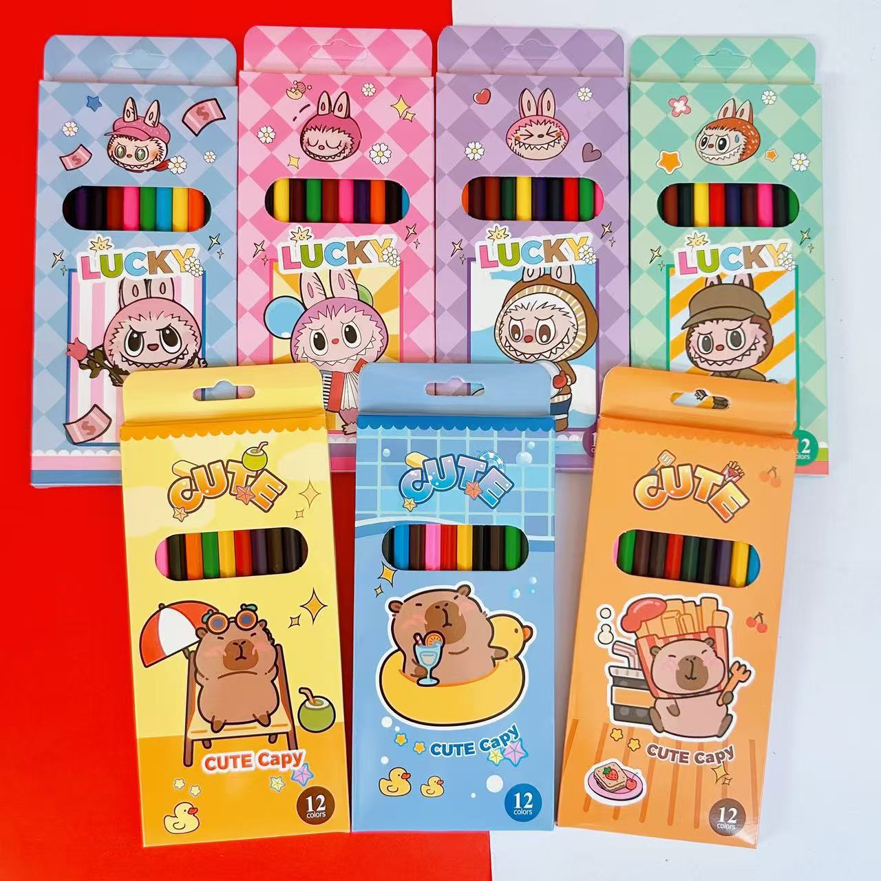カピバラ色鉛筆12本セット 漫画モルモット木製鉛筆 学生用お絵描きアート鉛筆 HB鉛筆