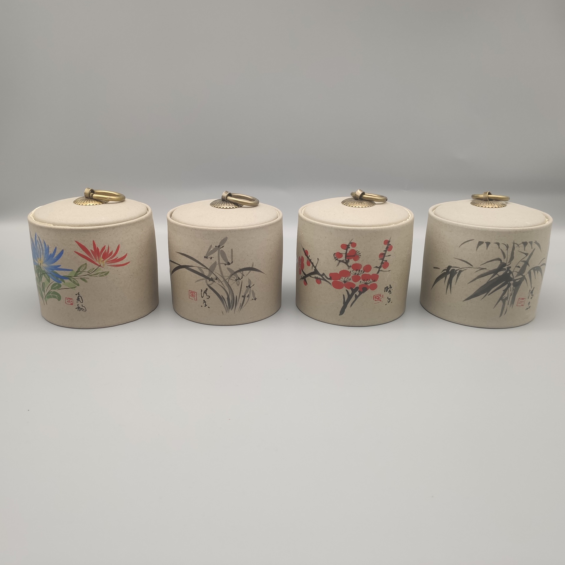 粗陶ミニ茶葉缶梅蘭竹菊貯蔵タンク