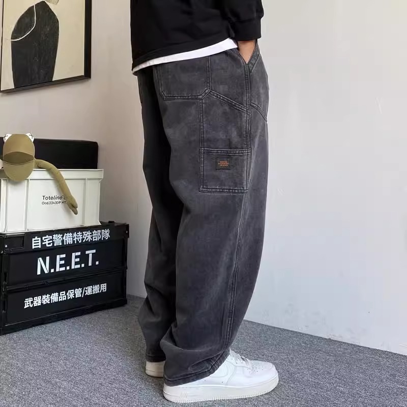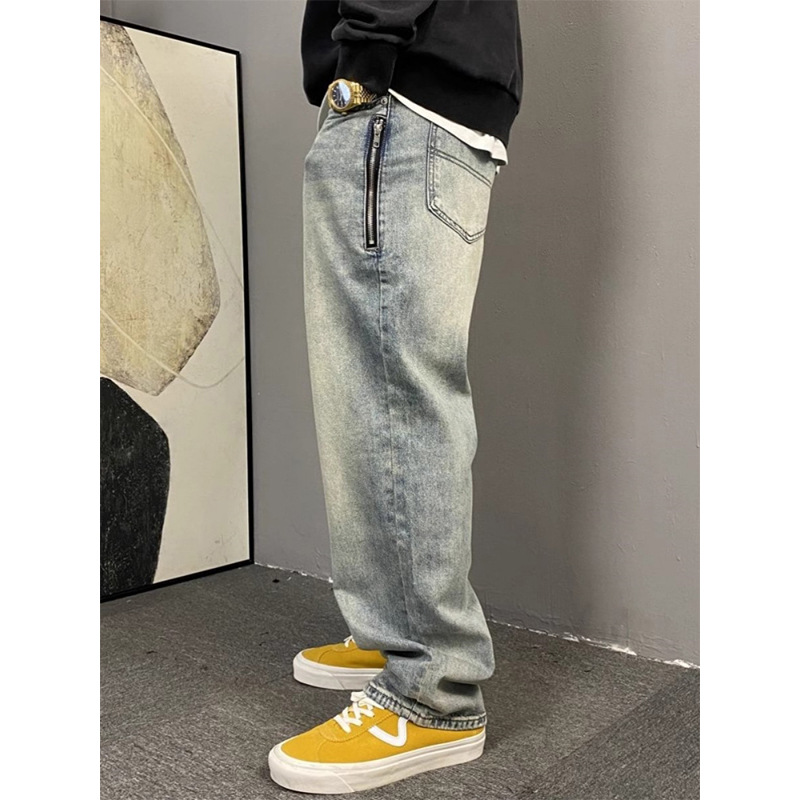 アメリカのファッションブランドのゆったりとしたストレートの水洗いジーンズ男の春と夏のレトロな百合は太っています。