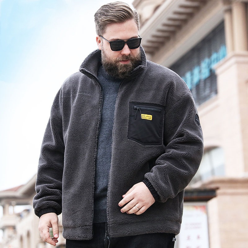 大きいサイズの羊の小毛のジャケットの男性の秋冬のファッションのブランドの太った人は太っていて、ゆったりしています。