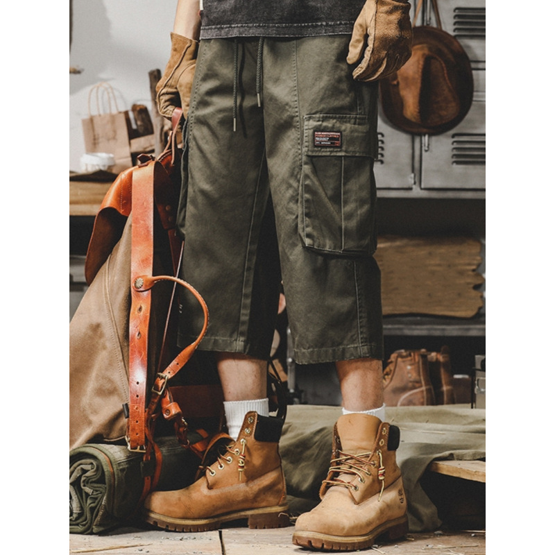 夏の薄い氷の糸の速乾の7分のズボンの男性のゆったりしている大きいサイズのストレートのカジュアルな半ズボンのアメリカの復古の工装のズボン
