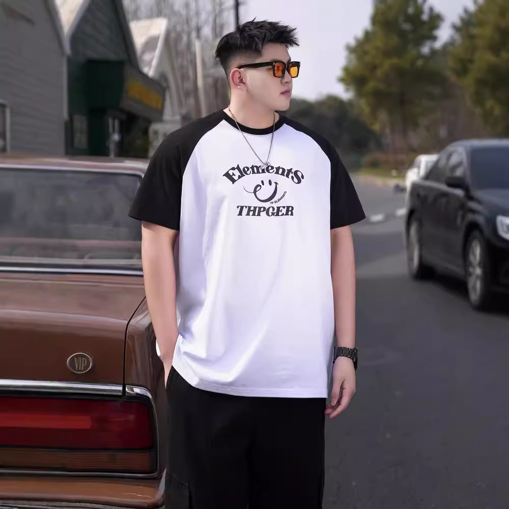 ファッションのアルファベットのプリントの丸首の半袖のtシャツの紳士服の夏の太った人は太っていて、ゆったりしている半袖の底のシャツの男をプラスします。