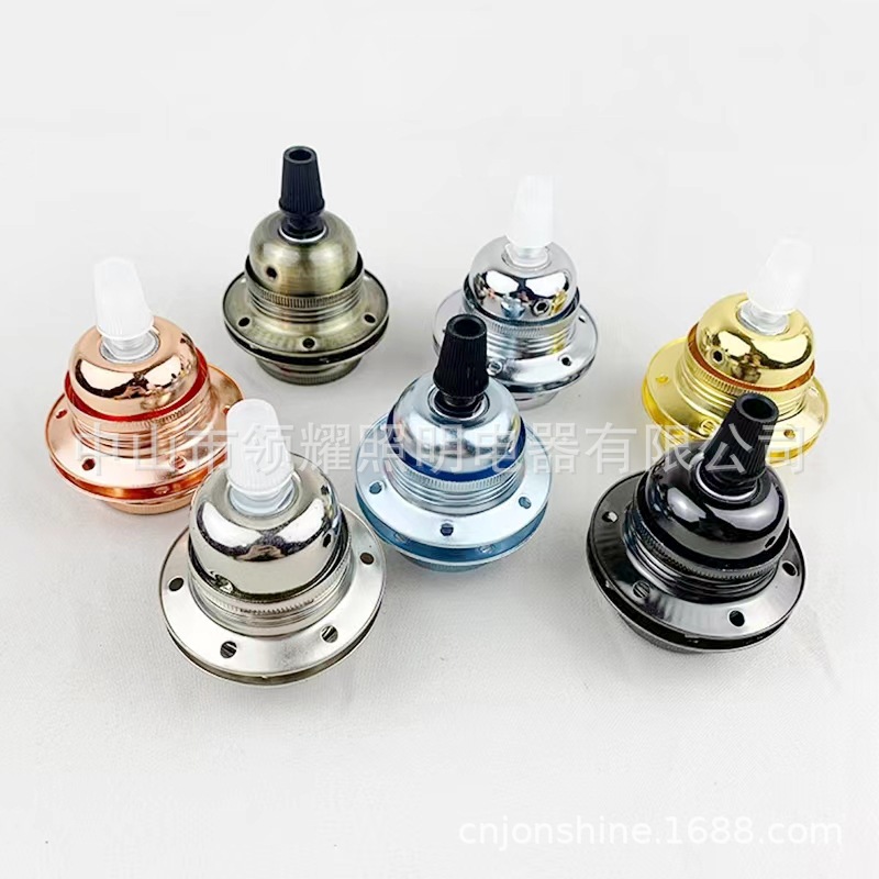 E27メッキ鉄合金金属セラミックランプ芯全歯二重外リングランプ座耐高温レトロe27ランプ座