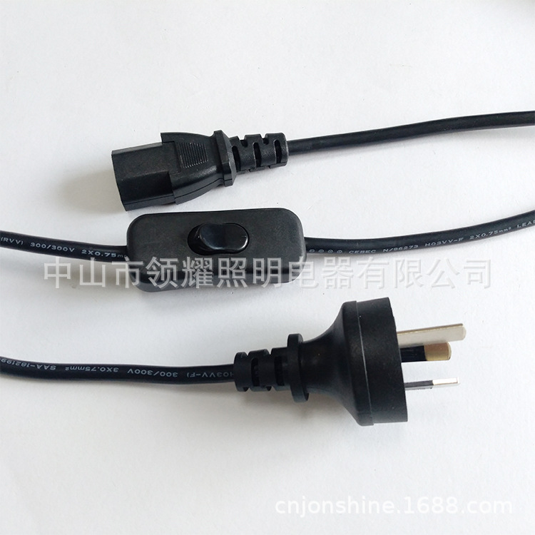 あさりプラグスイッチ付電線あさり三芯丸線澳規三芯線ボタンスイッチ付品文末
