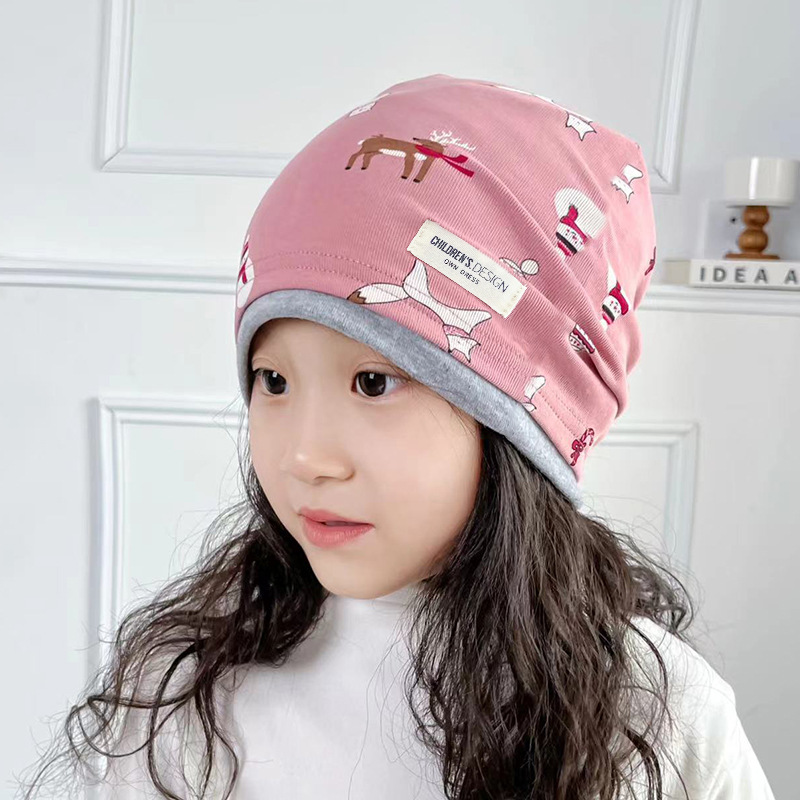 秋と冬の新しい韓国スタイルの子供用パイル帽子二重層対照的な色のベビー帽子男の子と女の子の純粋な綿の漫画プルオーバー帽子