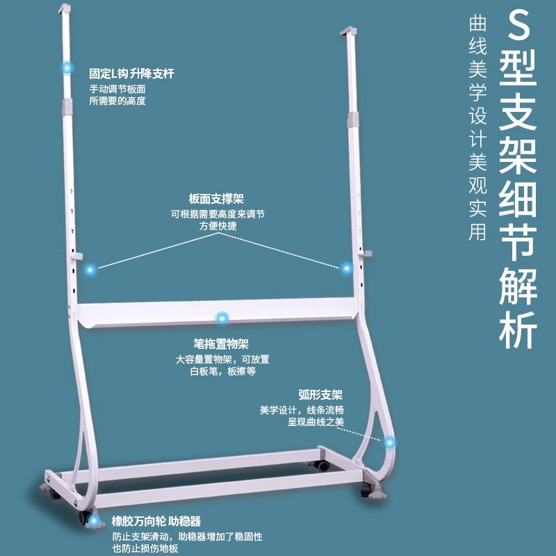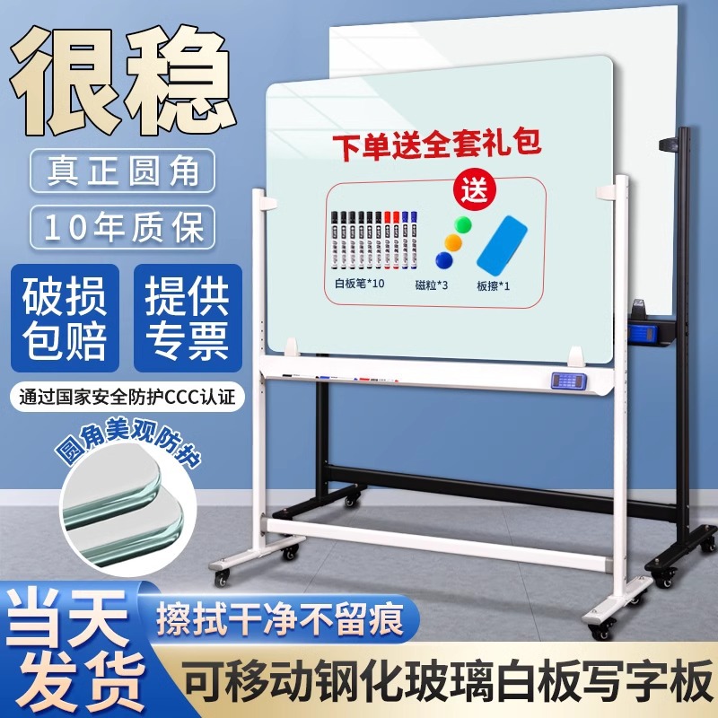 斉富磁性強化ガラスホワイトボードボードのアップグレードH型厚さスタンド式プーリー移動は黒板を拭くことができます。