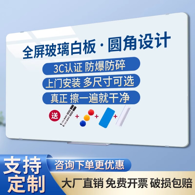 斉富磁気掛式ガラス白板強磁気会議ビジネスオフィス筆記投影板家庭用教育タブレット