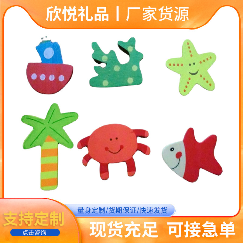 クリエイティブ児童opp包装動植物木質6個入り磁石ギフト冷蔵庫貼り