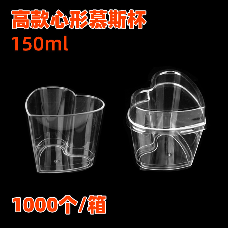 使い捨てハート型ムースカッププラスチックデザート台愛ゼリーカップヨーグルト蓋付き透明布丁カップ