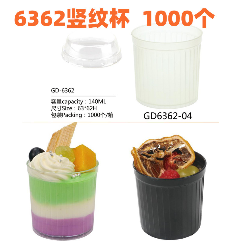 Gd6362透明円形縦紋デザートカッププラスチックカップ布丁カップムースカップティラミスカップ1000個