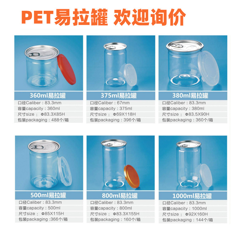 卸売りpet透明プラスチック缶500ml缶食品包装缶プラスチック缶ペットボトル