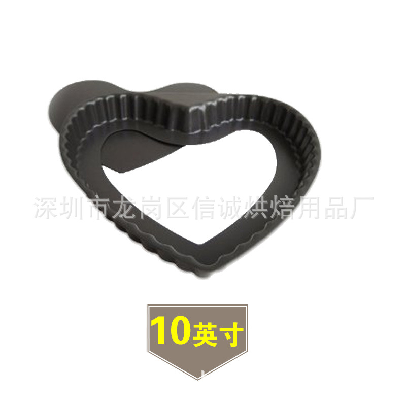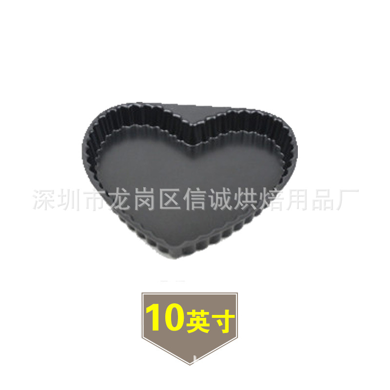 黒10インチハート型菊派盤活底ピザ盤pizza果派アルミニウム合金
