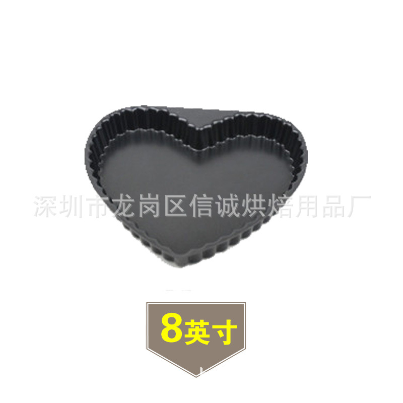 黒8インチハート型菊派盤活底ピザ盤pizza果派アルミニウム合金