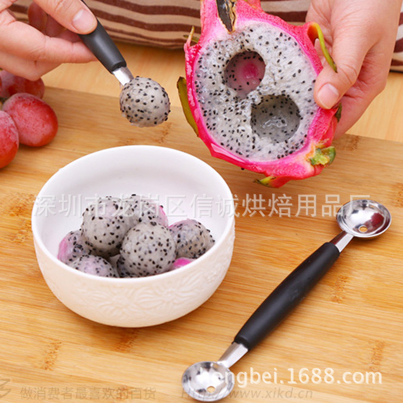 双頭の鋼の柄の果実はゴムの柄のステンレスの果物を掘ってボールを掘る器を掘ります。