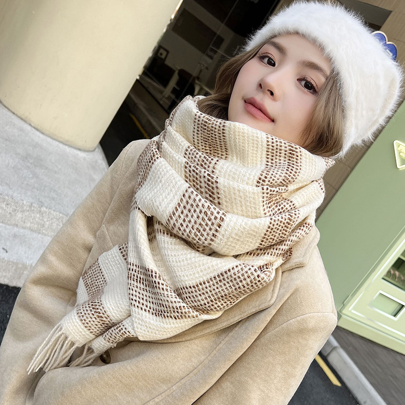 韓国版のツイルのストライプの外はストールの女性の秋冬の装飾のマフラーを掛けて厚くて暖かいファッションはカシミヤのマフラーをまねます。