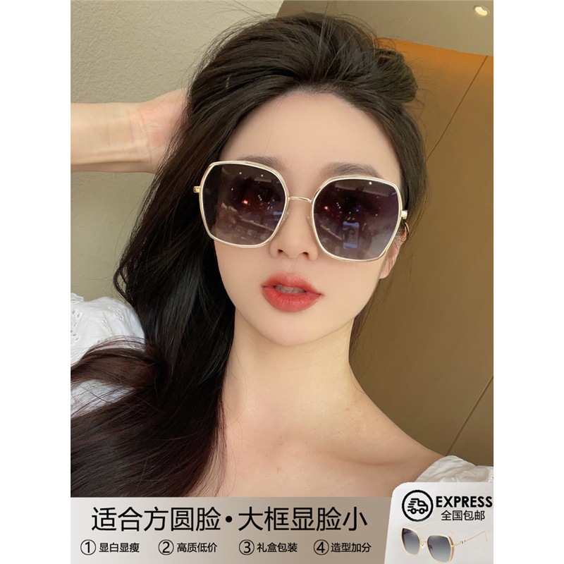 女性用サングラス 2024 新しいスタイルのラージフレーム、寛大な丸顔に適した抗 UV サングラス、小さなトレンドを示す
