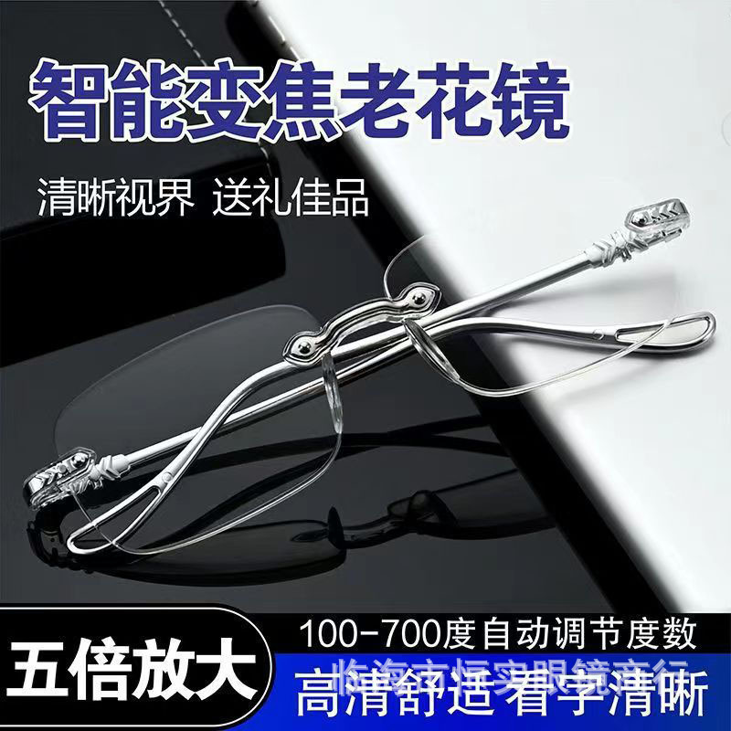 新しいスマートズームフレームレス高精細超軽量ファッショナブルな抗青色光老眼鏡中高年向け