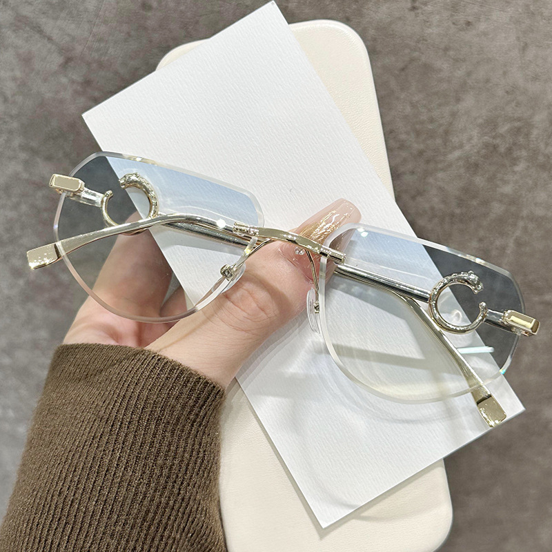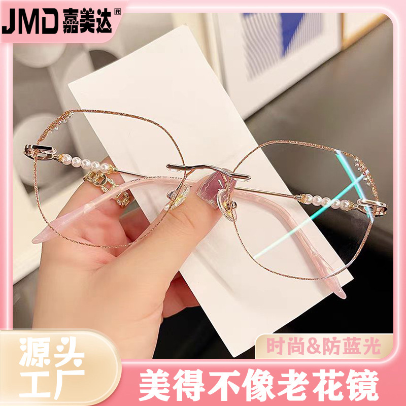 人気のファッショナブルなダイヤモンドカットリムレス老眼鏡インターネットセレブパールラージフレーム高精細抗青色光放射老眼鏡