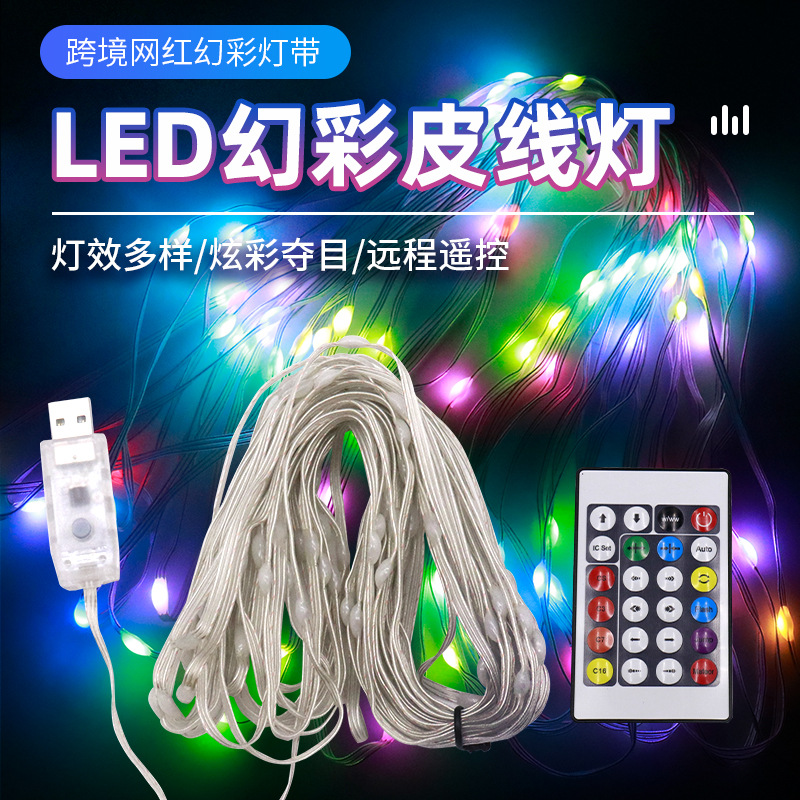 5V12v シンフォニーレザーラインストリングライト 1.1m ライト内蔵 IC シングルポイント制御カーテンストリングライト屋内と屋外の雰囲気防水