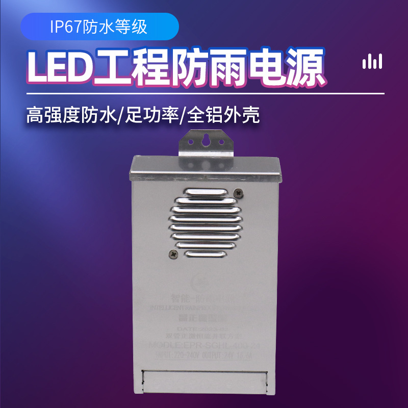 高強度防水大電力メーカー直供24v400w安防監視入退室ランプ電源付きip67足功