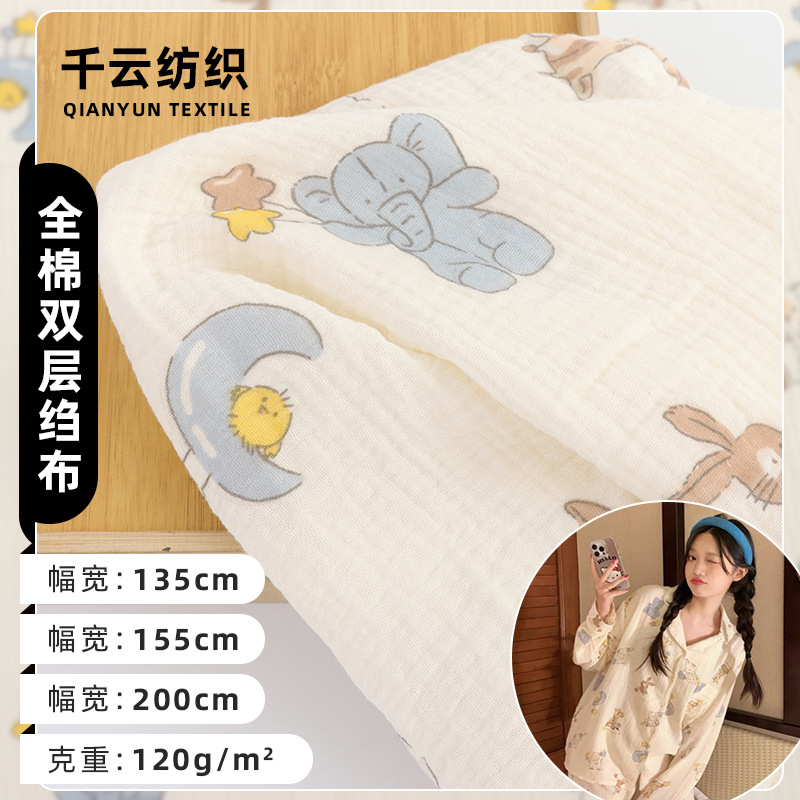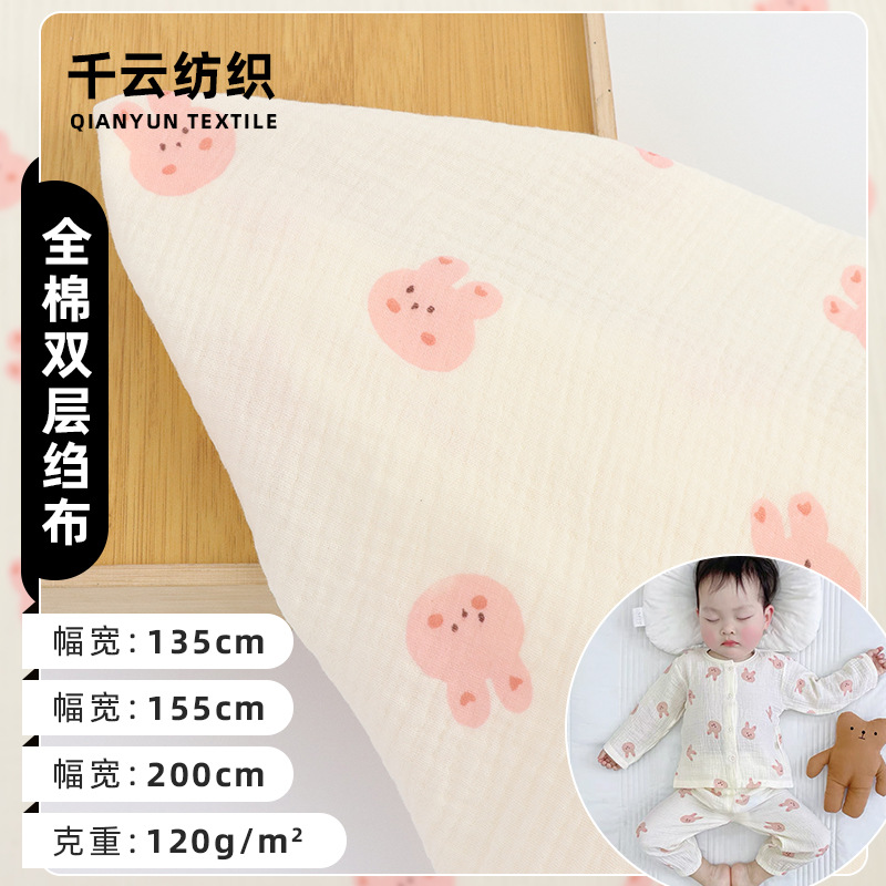 現物綿二重プリントクレープ萌えウサギ綿ガーゼ子供パジャマワンピース水洗い綿生地卸売り