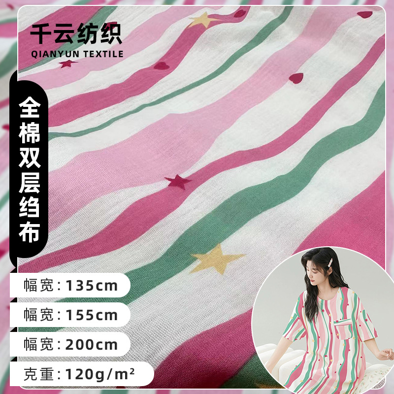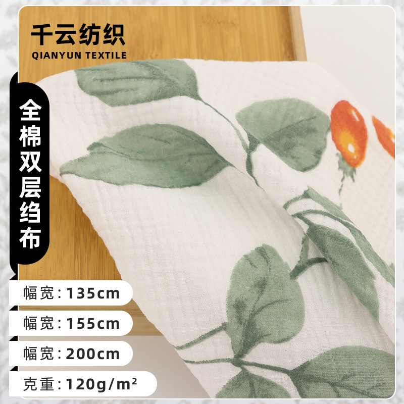 純綿二重ガーゼバブルシルクプリーツテクスチャ生地ホームウェア綿クレーププリントベビー服パジャマ生地